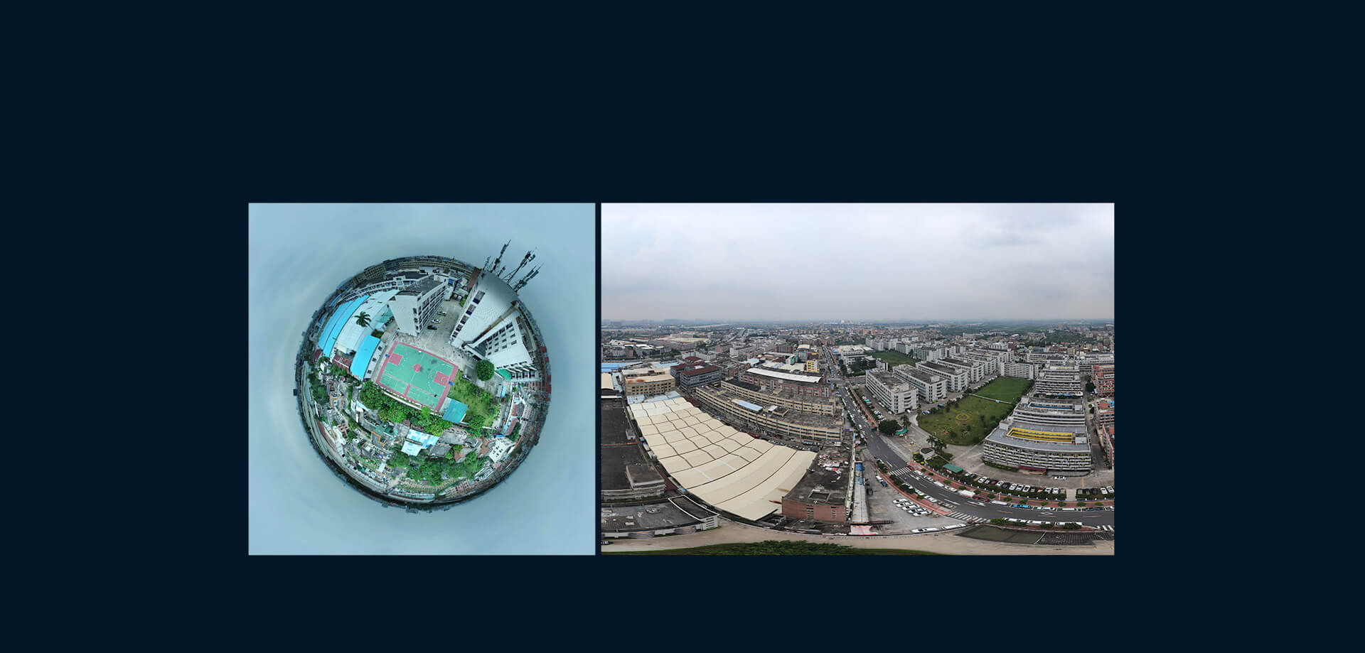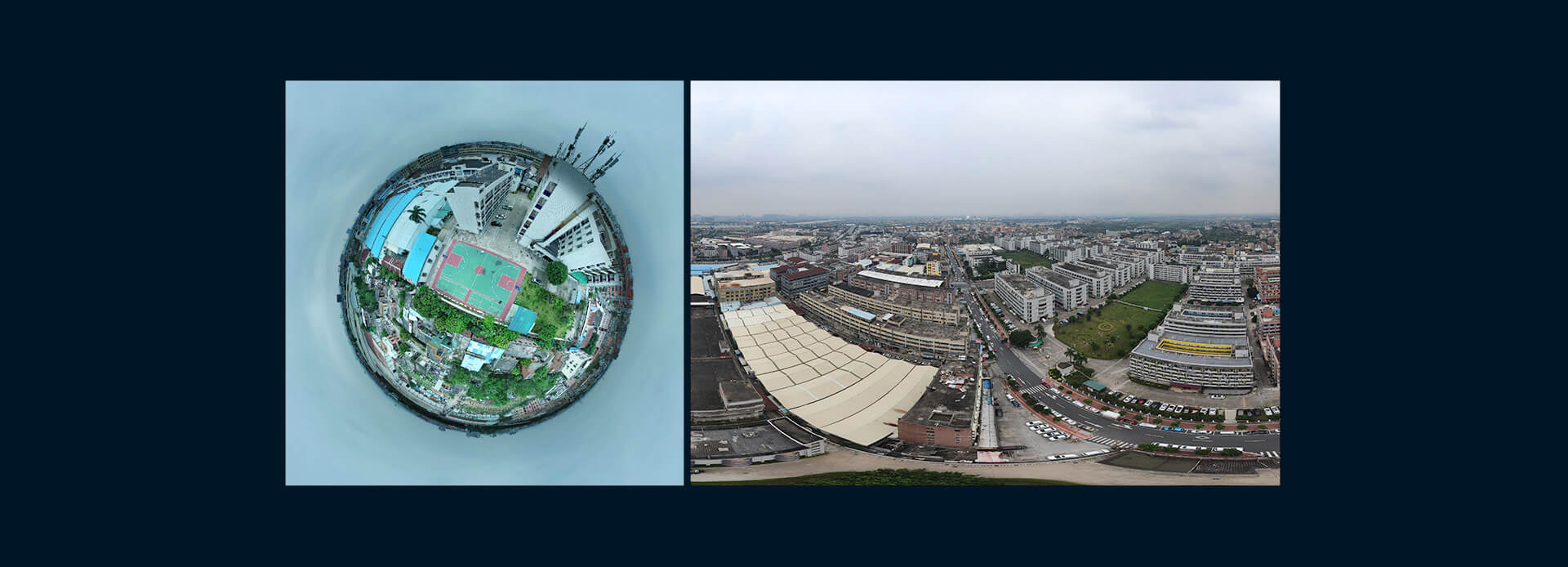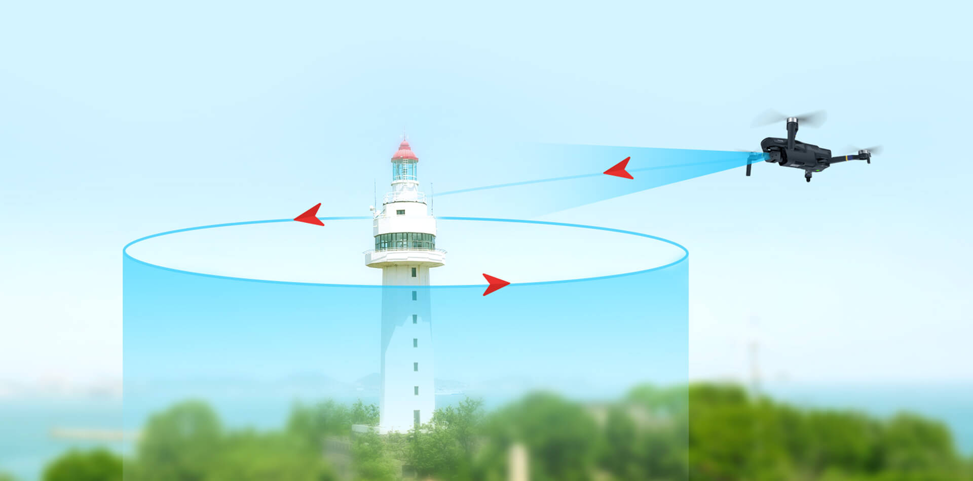 飛控支持用戶在APP操作一鍵全景圖拍攝的功能,進入全景拍照功能,飛控自動調節云臺航向和俯仰,掃描拍攝多張照片, 自動拼接成為全景圖片。