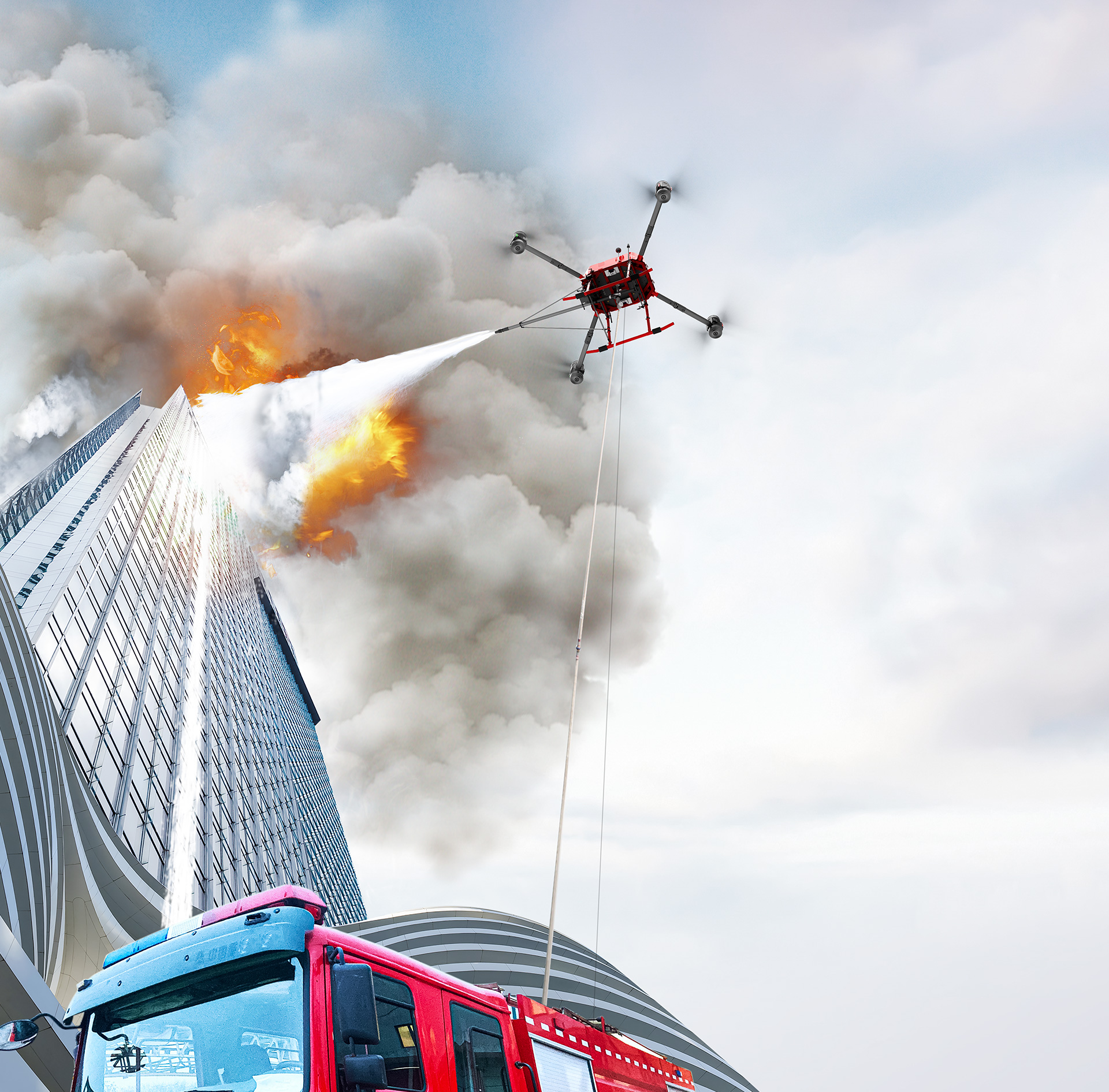 在城市消防應(yīng)用中,無(wú)人機(jī)可替代人工進(jìn)行火情偵查,減少消防人員傷亡。